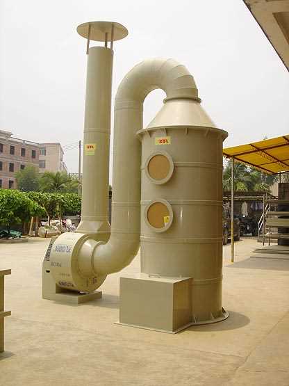 玻璃鋼洗滌塔是硫酸生產線的主要設備,該塔的主要作用是:由塔底進塔的帶有礦塵、砷、硒、氟、二氧化硫等雜質和二氧化碳氣體,經填料層,由塔頂排出。而稀硫酸通過塔頂的噴嘴噴淋,使之填料層中氣液充分接觸,除去雜質,達到凈化氣體的作用。